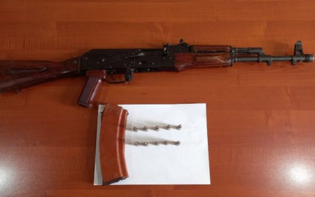 Ondan texniki cəhətdən işlək və atəşə tam yararlı “AK-74” markalı avtomat, həmin silaha məxsus sandıqça və 5,45 çaplı 10 ədəd patron aşkar edilərək götürülüb.