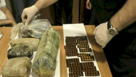 Elgün Cəbrayılovun əlindəki torbanın içərisindən ayrı-ayrı bükümlərdə qablaşdırılmış ümumən 5 kiloqram 400 qram heroin, 3 kiloqram 700 qram həşiş qətranı, 2 kiloqram marixuana və 200 ədəd metadon həbi aşkarlanaraq götürülüb.