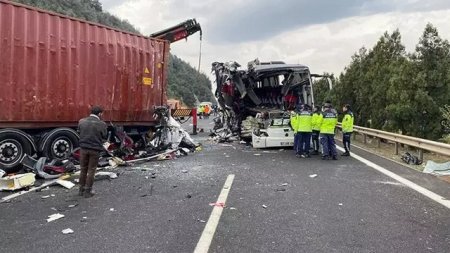 Türkiyədə sərnişin avtobusu yük maşını ilə toqquşub: Ölənlər və yaralananlar var