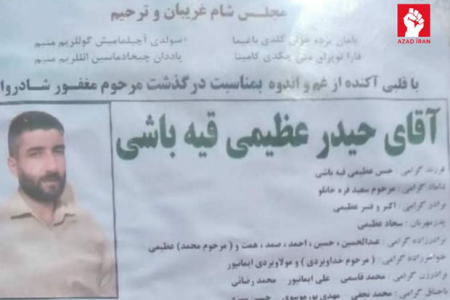 Təxminən bir ay öncə İranın Təbriz şəhərində baş tutan etirazlarda həbs edilən üç uşaq atası Heydər Əzimi ETTELAAT-ın müstəntiqləri tərəfindən işgəncələr altında öldürülüb.