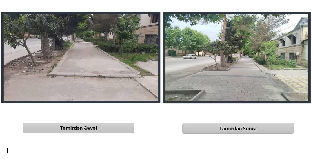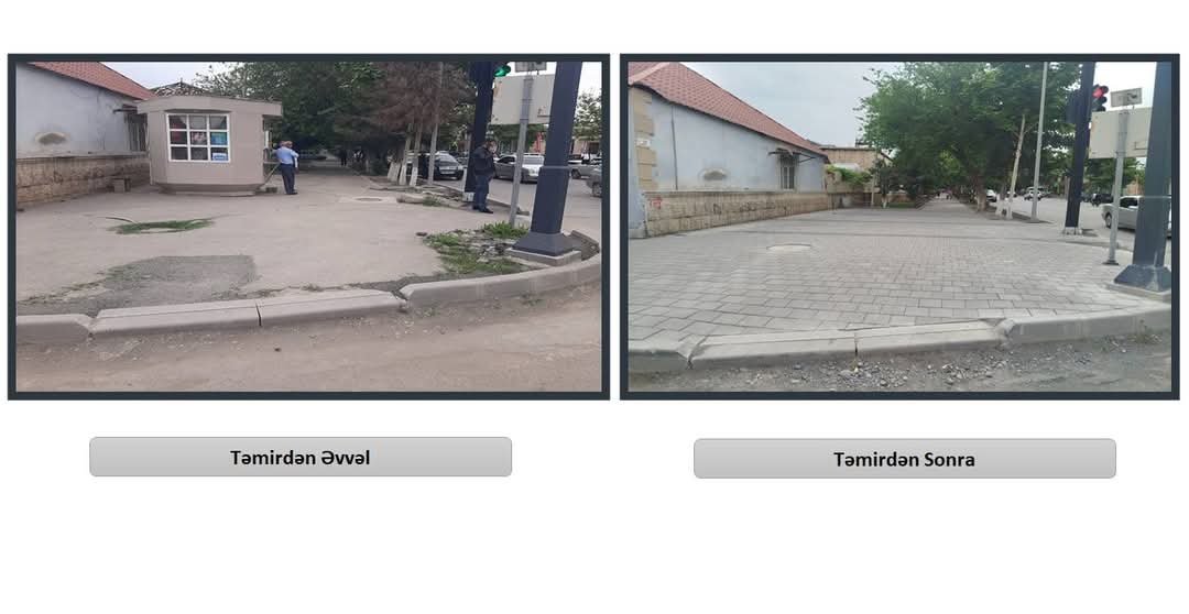 Yevlaxda Şəhərin Nizami prospektində səkilər əsaslı şəkildə təmir edilmişdir-Foto