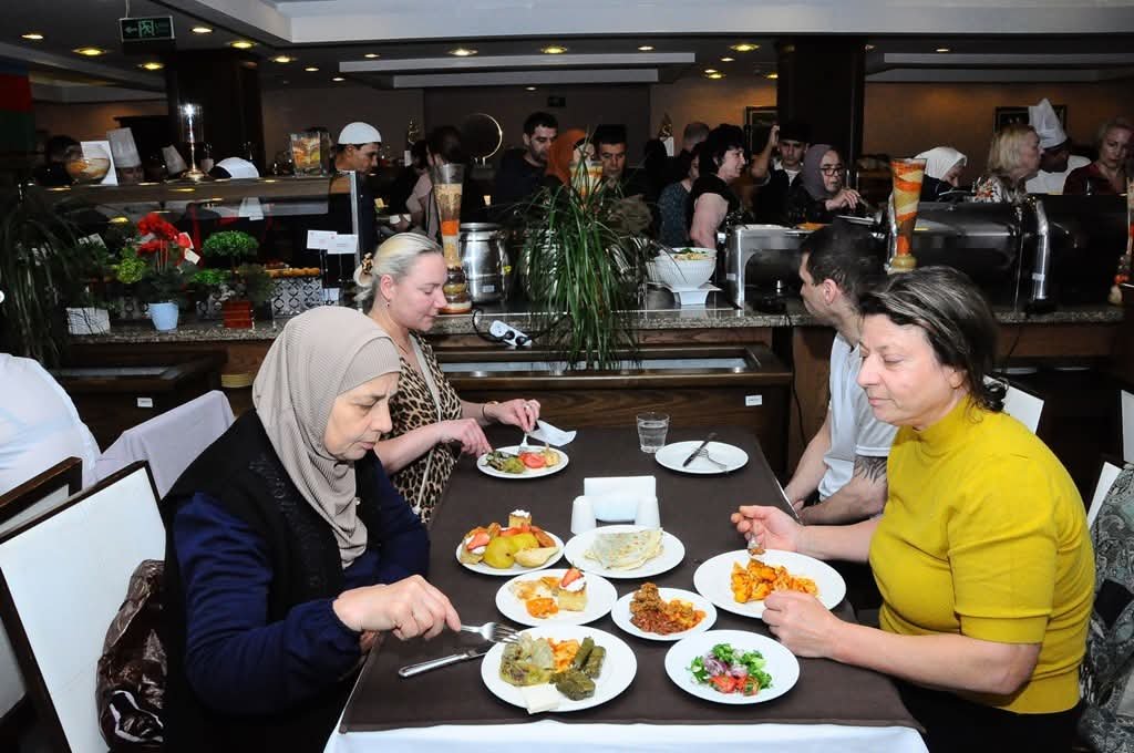 Hoteldə istirahət edən xarici ölkələrdən olan turistlər təamların dadına baxıb, canlı türk musiqisi dinləmişlər.