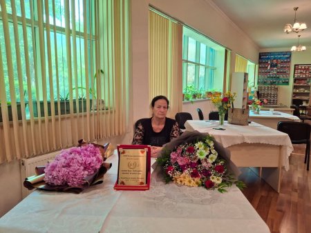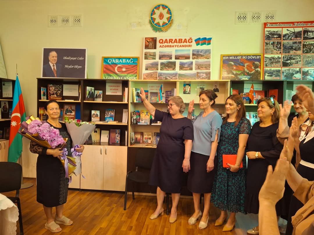 Kitabxana müdiri Həmidə İsgəndərova təqaüdə göndəridi.Foto