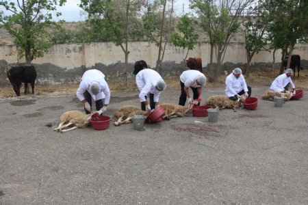 Yevlax Şəhər İcra Hakimiyyəti tərəfindən bayram münasibətilə qurbanlar kəsilib. Foto