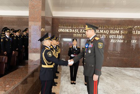 Bildirilib ki, Azərbaycan Polisinin yaranmasının 107-ci ildönümü münasibətilə daxili işlər naziri general-polkovnik Vilayət Eyvazov və nazirliyin rəhbər heyəti Fəxri xiyabana gələrək Ulu Öndər Heydər Əliyevin abidə kompleksi önünə əklil qoyublar.