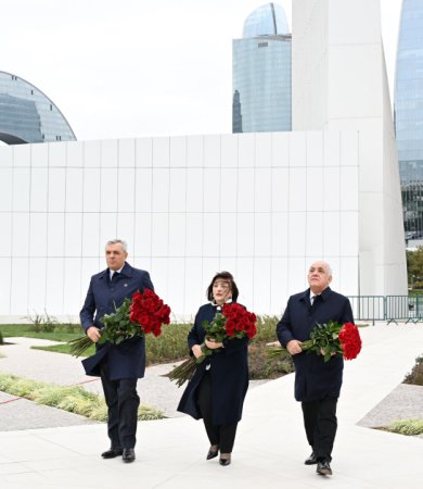 Dövlət rəsmiləri Zəfər abidəsini ziyarət edir