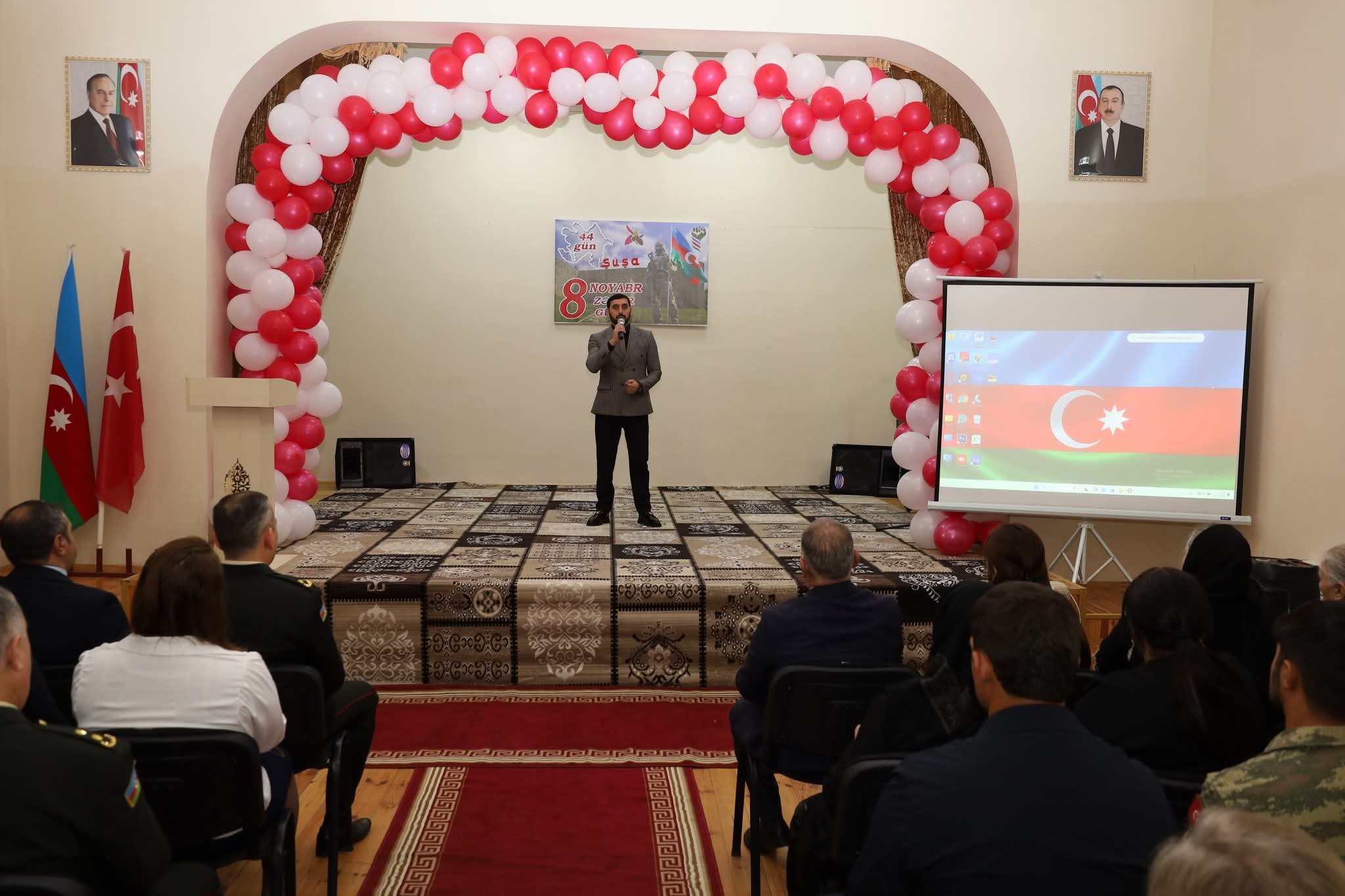 Turkdunyasi.az xəbər verir ki, tədbirdə Azərbaycan Respublikasının Dövlət Himni səsləndirilmiş, Xalqımızın Ümummilli Lideri Heydər Əliyevin və torpaqlarımızın bütövlüyü uğrunda canlarını qurban vermiş qəhrəman şəhidlərimizin əziz xatirələri bir dəqiqəlik sükutla yad edilmişdir. Tədbirin gedişində 8 Noyabr Zəfər Günü ilə bağlı videoçarx nümayiş etdirilmişdir.