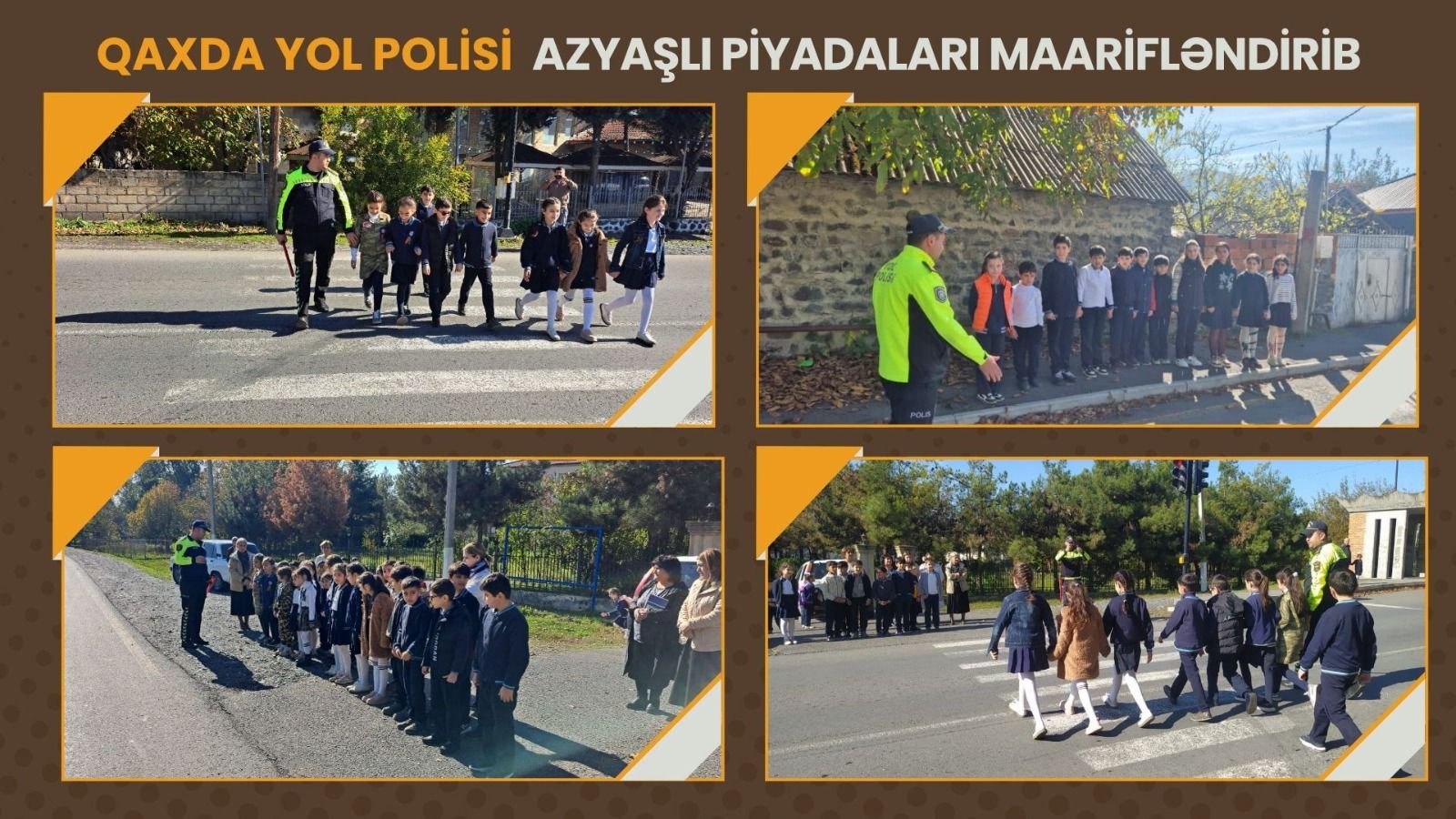 Tədbirlər çərçivəsində rayonun Güllük kənd tam orta məktəbində şagirdlərlə görüş keçirilib. Onlara piyada keçidlərindən necə istifadə etmələri, hansı halda yolu keçmələri, eləcə də digər yol-hərəkəti qaydaları əyani şəkildə izah edilib. Həmçinin təhlükəsiz davranış vərdişləri və yol nişanları ilə bağlı onları maraqlandıran suallar cavablandırılıb.