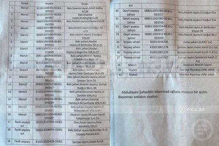 Oqtay İbrahimov daha sonra deyib: "Şahəddin Abdullayevin şəxsən öz adına olan 30 ədəd daşınmaz əmlak, müəssisə, qeyri-yaşayış sahələri, xarici maşın kolleksiyaları saymaqla bitməz.