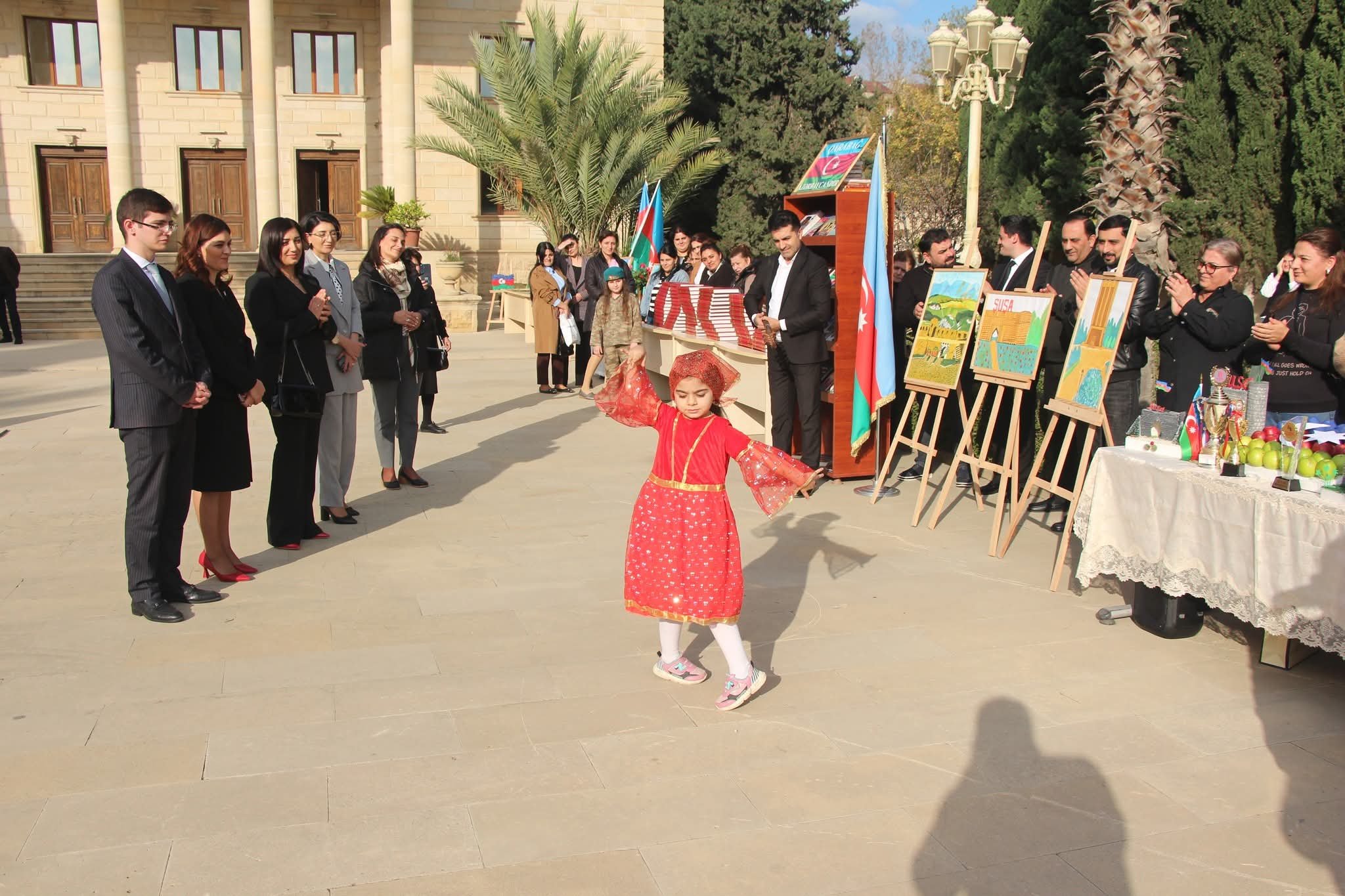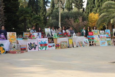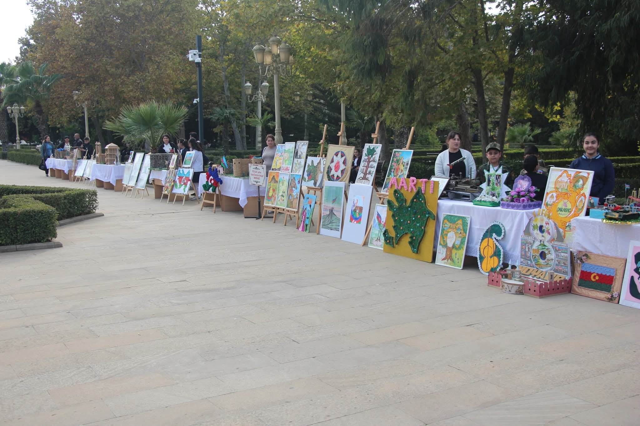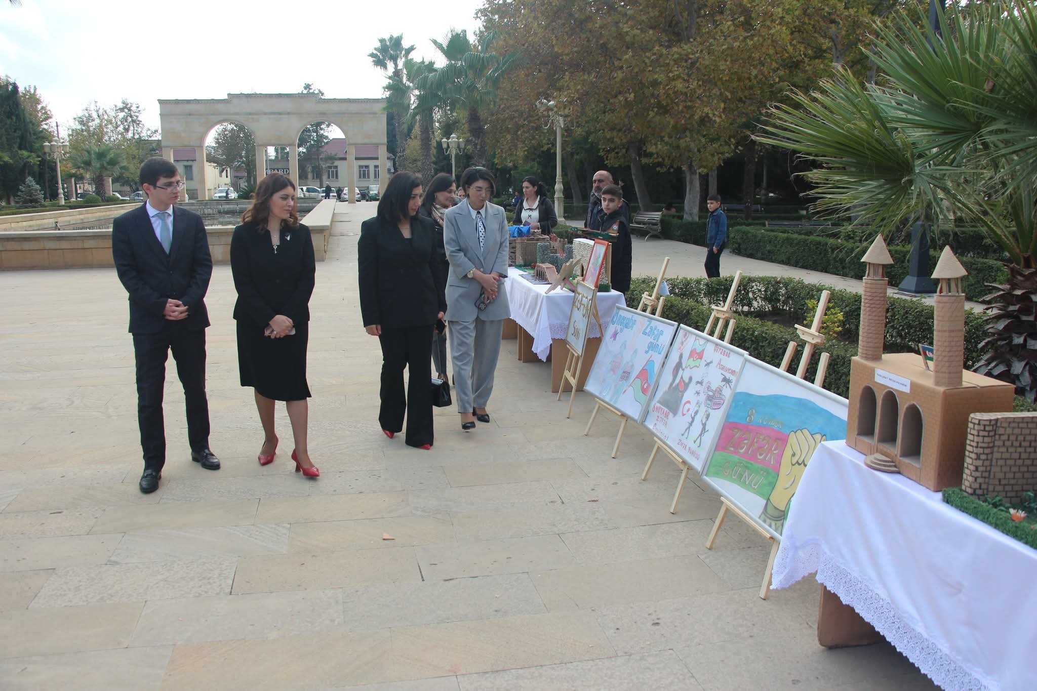 Yevlaxda 8 Noyabr-Zəfər Gününün beşinci ildönümünə həsr olunmuş rəsm və əl işlərindən ibarət sərgi keçirilib-Foto