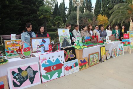 Yevlaxda 8 Noyabr-Zəfər Gününün beşinci ildönümünə həsr olunmuş rəsm və əl işlərindən ibarət sərgi keçirilib.-Foto