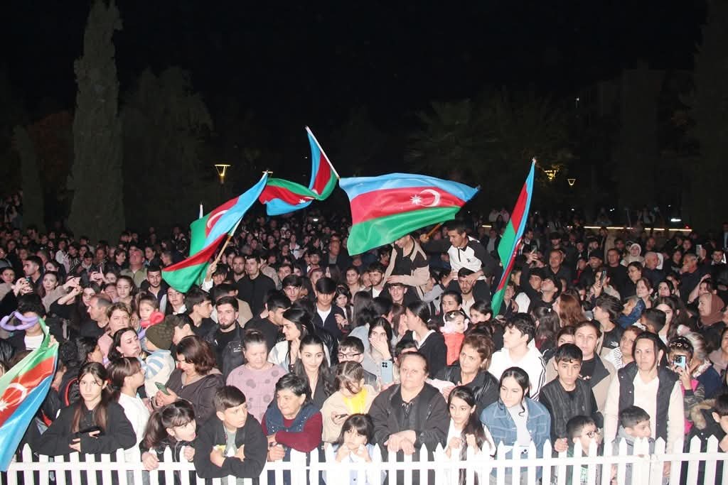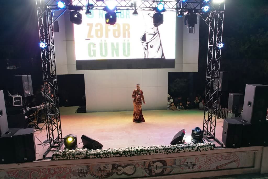 Yevlax şəhərindəki Əyləncə parkında təşkil olunan bayram konsertində Zəfər Günü münasibətilə təbriklər səsləndirilib, Möhtərəm Prezidentimiz, Müzəffər Ali Baş Komandan cənab İlham Əliyevin rəhbərliyi ilə qazanılan Şanlı Zəfərin tarixi əhəmiyyətindən danışılıb, öz qanları və canları ilə bizə bu Qələbəni bəxş edən Şəhidlərimizə Allahdan rəhmət, Qazilərimizə isə şəfa dilənib. Şəhid ailələri və qazilər Möhtərəm Prezidentimiz, Müzəffər Ali Baş Komandan cənab İlham Əliyev və Birinci vitse-prezident hörmətli Mehriban xanım Əliyeva tərəfindən daim diqqət və qayğı ilə əhatə olunduqları qeyd edilib.