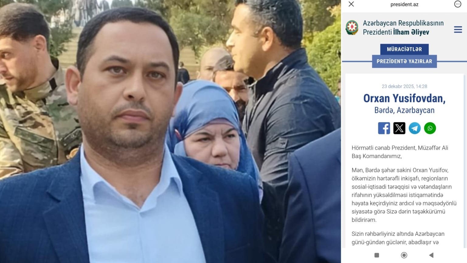 Bərdə şəhər sakini, ictimai fəal Orxan Yusifovun İlham Əliyev və Mehriban Əliyevaya işdən əsassız ixtisar və ailə vəziyyəti ilə bağlı müraciəti.