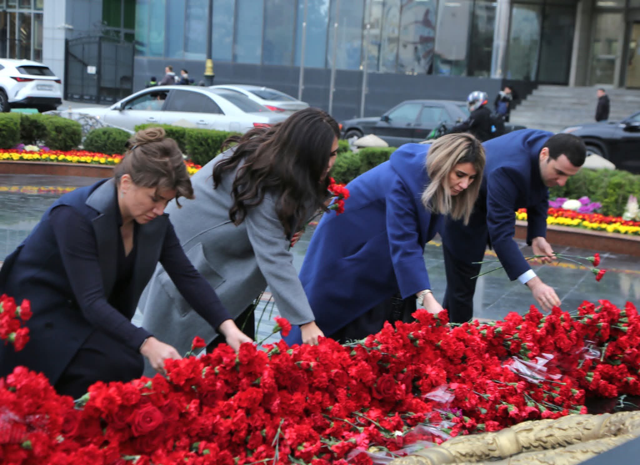 Abidə önünə gül dəstələri düzülüb, Xocalı şəhidlərinin əziz xatirəsi dərin ehtiramla yad olunub.