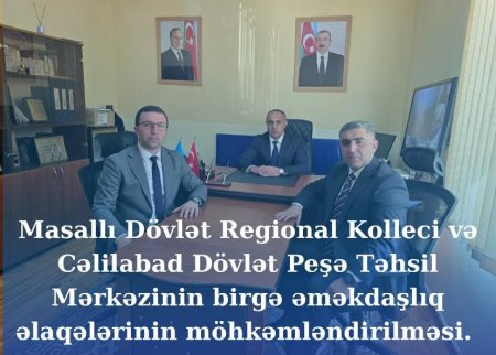 Masallı Dövlət Regional Kollecinin direktoru, filologiya üzrə fəlsəfə doktoru Rövşən Qurbanovun təşəbbüsü ilə Cəlilabad Dövlət Peşə Təhsil Mərkəzinin direktoru Ramil Əmənov kollecdə rəsmi səfərdə olmuşdur.