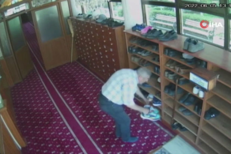 Köhnə ayaqqabısını məsciddə təzəsi ilə “dəyişdi” - VİDEO
