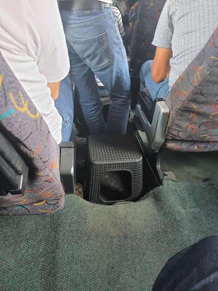 Bildirilib ki, sərnişinlərin getməsi üçün oturacaqlar arasına stullar qoyulub.