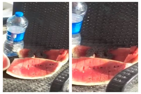 İstirahətə gələnlər qəflətən gördüklərindən heyrətə gəliblər. Dənizdən çıxıb yeməyə gələnlər kəsdikləri qarpızın içərisində 2 ilan olduğunu görüblər.