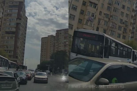 Qanun pozuntusu nəqliyyat vasitələrindən birinin videoqeydiyyatçısı tərəfindən lentə alınıb.
