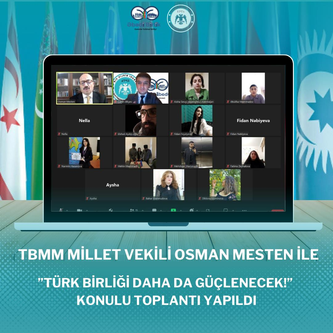 "Əbədi Birlik" Gənclər İctimai Birliyi və “Əbədi Birlik” Türk dünyası komitəsinin təşkilatçılığı ilə "Türk birliyi daha da güclənəcək!" mövzusunda Zoom platformasında görüş keçir