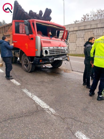 “KamAZ” markalı yük avtomobilinin avtobusun arxa hissəsinə çırpılması nəticəsində avtobusda olan sərnişinlərdən bir neçəsi müxtəlif dərəcəli bədən xəsarəti alıb.