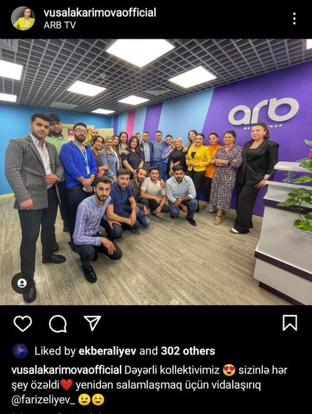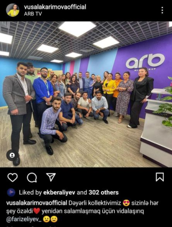 Bir neçə gün öncə ARB TV-də kollektivlə fotosunu paylaşan Vüsalə “yenidən salamlaşmaq üçün vidalaşırıq” sözlərini qeyd edib.