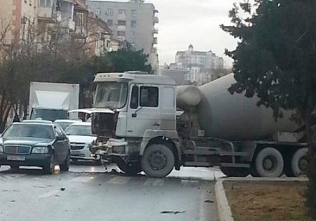 Betonqarışdıranla minik avtomobili toqquşdu: ölən var
