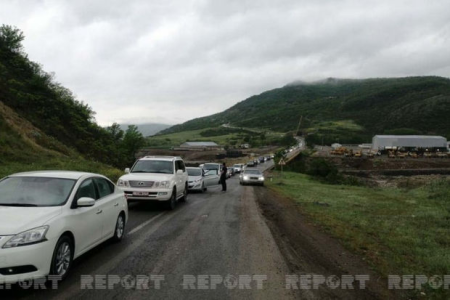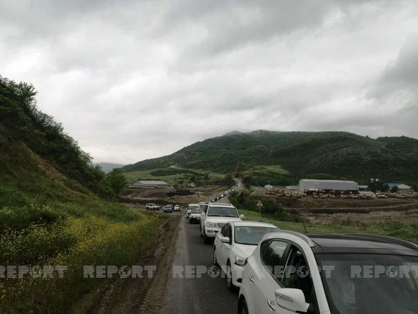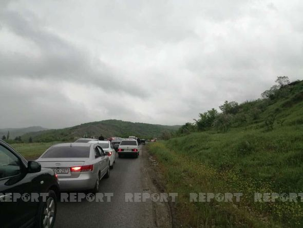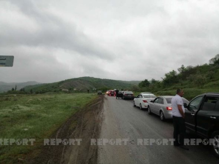 Ağsu aşırımında baş vermiş qəza yeddi kilometr uzunluğunda tıxac yaratdı - FOTO