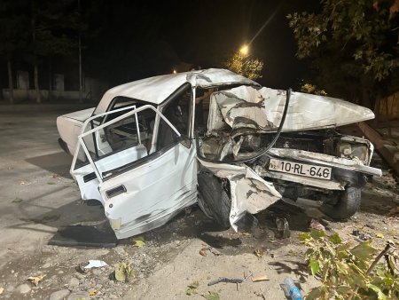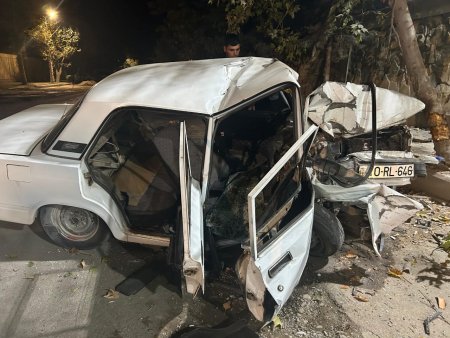 Yevlaxda ağır qəza Avtomobil ağaca çırpıldı