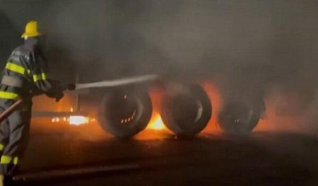 Yanğın nəticəsində qoşqunun iki ədəd təkəri yanıb.