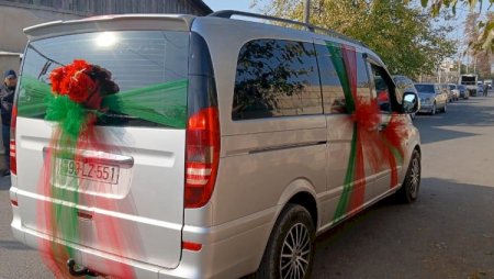 Ailəsi cənazəni daşıyan avtomobili "bəy maşını"na bənzər qırmızı lentlə bəzəyib.