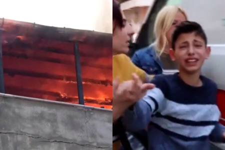 Azyaşlı uşağın dəhşətli yanğından xilas olunma anı - VİDEO