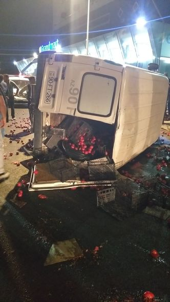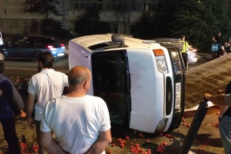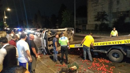 Bakıda pomidor yüklü avtomobil aşıb.