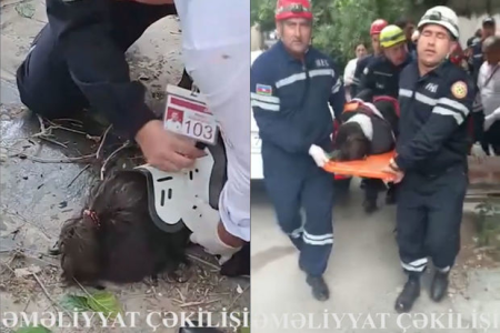 Xilasedicilər xilasetmə vasitələrindən istifadə etməklə vətəndaşı aşağı düşürərək təcili tibbi yardım briqadasına təhvil veriblər.