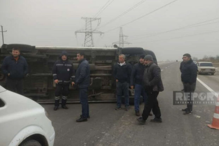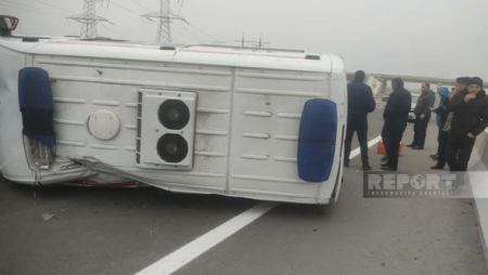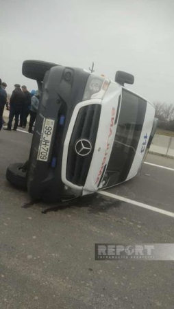 Şəmkirdə təcili tibbi yardım maşını aşıb, xəsarət alan var - FOTO