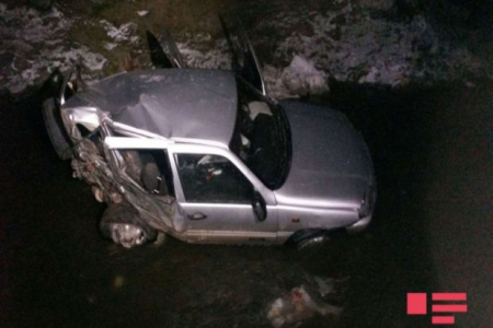 Nəticədə avtomobil yol kənarındakı su kanalına düşüb.