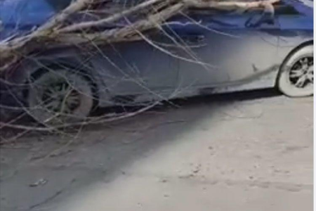 Şiddətli küləyin təsirindən Kürdəmirdə ağac park vəziyyətində olan avtomobilin üzərinə aşıb.