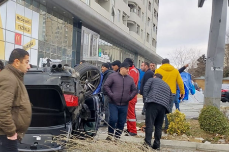 Bakıda qırmızı işıqda keçən BMW qəza törədib aşdı: Xəsarət alan var