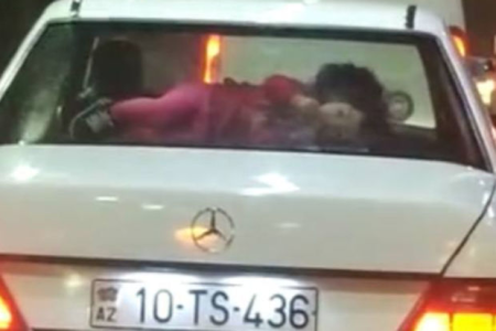 Avtosfer.az xəbər verir ki, 10-TS-436 dövlət nömrə nişanlı, “Mercedes” markalı avtomobilin sürücüsü maşının arxa şüşəsinin olduğu yerdə azyaşlı uşağı aparır. Görüntülərdə kiminsə uşağı orada tutduğu görünür.