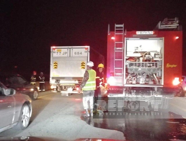 Belə ki, minik avtomobili Gəncə istiqamətində hərəkətdə olarkən eyni istiqamətdə olan "KamAZ" markalı yük maşınına çırpılıb. Zərbənin təsirindən avtomobildən yanğın baş verib.