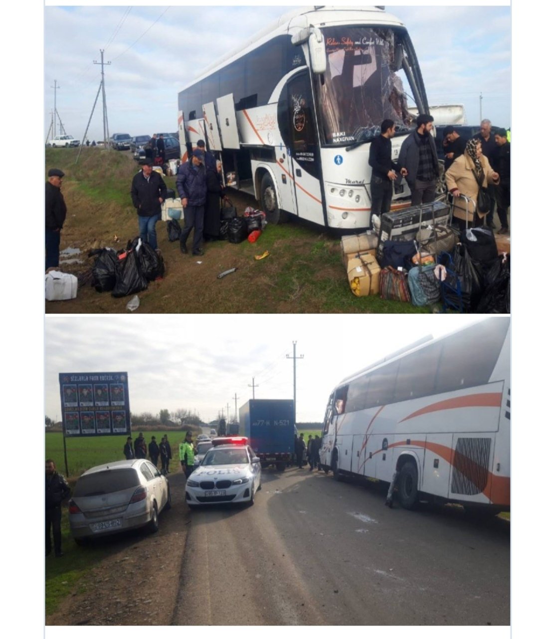 Naxçıvandan Bakıya gedən avtobus Biləsuvarda qəzaya uğrayıb.