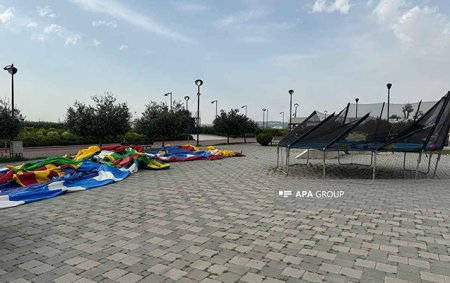 Bakıda külək içində uşaqlar olan attraksionu aşırdı