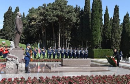 Prezident İlham Əliyev ulu öndərin məzarı önünə əklil qoyub.