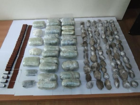 Ərazidə aparılmış axtarış tədbirləri nəticəsində 4 ədəd bağlamanın içərisində ümumi çəkisi 79 kiloqram 595 qram narkotik vasitəyə (45 kq 580 qr “heroin”, 27 kq 940 qr “marixuana”, 3 kq 665 qr “metamfetamin”, 2 kq 410 qr “tiryək”) bənzər maddələr və psixotrop tərkibli 4 000 ədəd “metadon-40” həbləri aşkar olunaraq götürülüb.