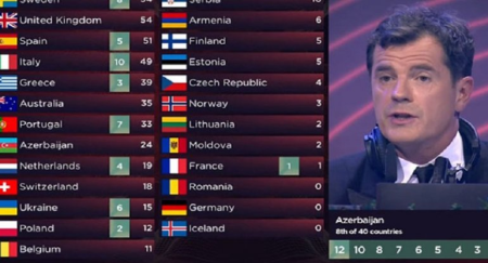 Onu da qeyd edək ki, Azərbaycan aparıcısı canlı efirdə səsləri elan edə bilməyib və EBU özü səsləri açıqlayıb. Azərbaycan birinci yerdə Ukryananı göstərsə də, səslər Böyük Britaniyaya yazılıb.