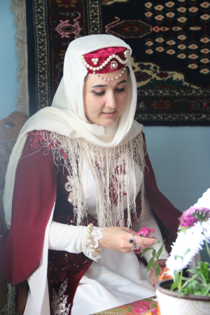 Tədbirdə iştirak edən qonaqlar Şuşanın milli geyimlərinə uyğun olaraq qarşlanıblar.