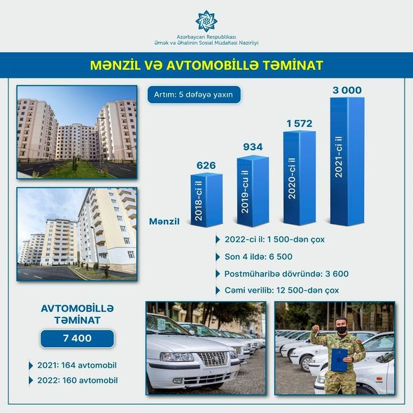 Nazir qeyd edib ki, bu il üçün 1 500-dən çox mənzil və fərdi evin şəhid ailələri və müharibə əlillərinə verilməsi nəzərdə tutulur. Cari ilin ilk altı ayında artıq 600 mənzil təqdim olunub.