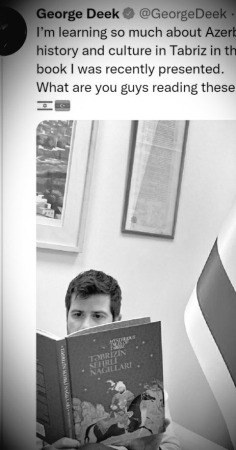 Xatırladaq ki, İsrailin Azərbaycandakı səfiri Corc Dik ötən gün tviter səhifəsində “Təbrizin sehrli nağılları” kitabını oxuduğunu əks etdirən foto paylaşıb. Diplomat qeyd edib: "Bu yaxınlarda mənə ərməğan edilən bu möhtəşəm kitabda Təbrizdə Azərbaycan tarixi və mədəniyyəti haqqında çox şey öyrənirəm”.