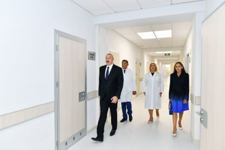 Azərbaycan Respublikasının Prezidenti İlham Əliyev və Birinci vitse-prezident Mehriban Əliyeva Bakının Sabunçu rayonunun Bakıxanov qəsəbəsində 2 nömrəli doğum evində aparılmış əsaslı təmirdən sonra yaradılan şəraitlə tanış olublar.