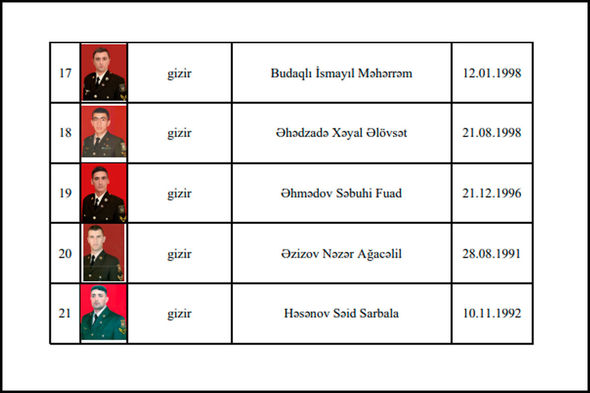Ermənistanın təxribatı nəticəsində şəhid olan hərbçilərimizin SİYAHISI - FOTO